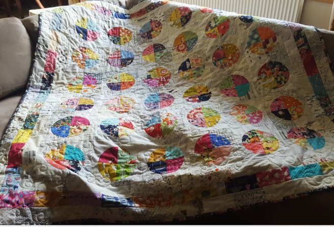 It’s a drunkards path quilt. I’ve loved these pieced circles for so long, but I firstly I was concerned about cutting all those curves and secondly about sewing all those curves! Turns out there was really no need to worry.