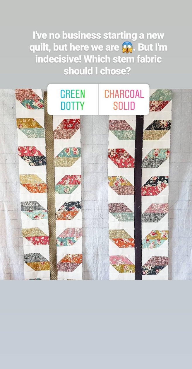 I had had the “Stems” quilt pattern from Fig Tree and co on my to-make list for a long time, and a Tilda fat quarter bundle of both Memory Lane and Cabbage Rose lines. I still absolutely love these fabrics, rich but so pretty. So without thinking too hard, I just started… And immediately turned to Instagram for help!