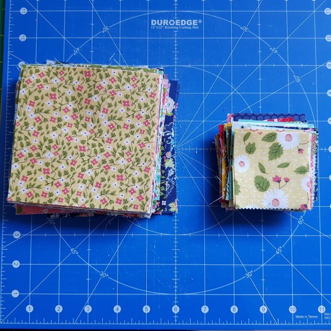 The above picture is what you end up with: 72 white 4.5″ squares, 64 white 2.5″ squares, 72 printed 4.5″ squares, 64 printed 2.5″ squares.