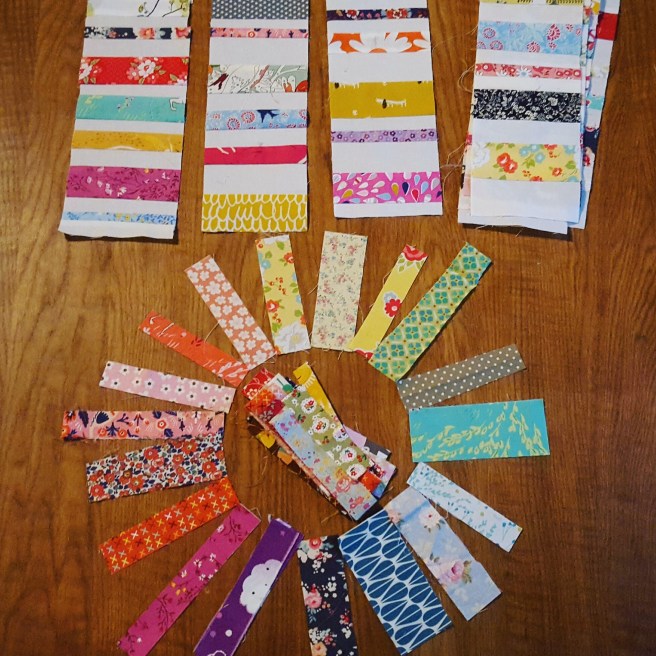 They’re all 2″ strips, cut to size and put into piles as labelled below:
